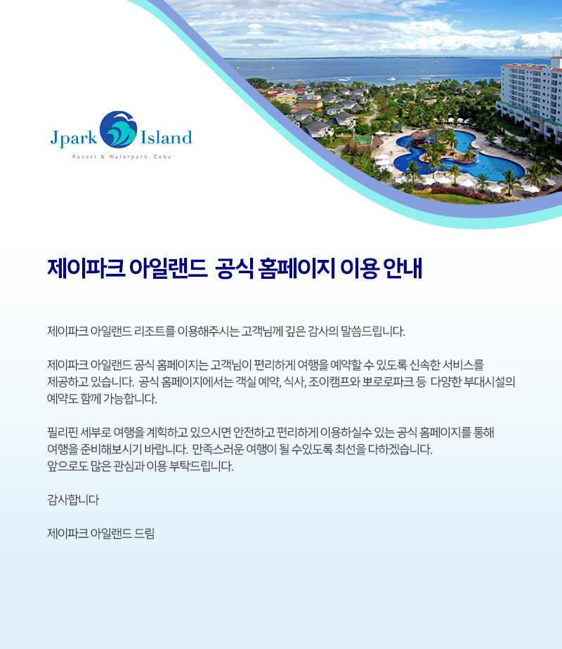 제이파크 아일랜드 공식 홈페이지 이용 안내